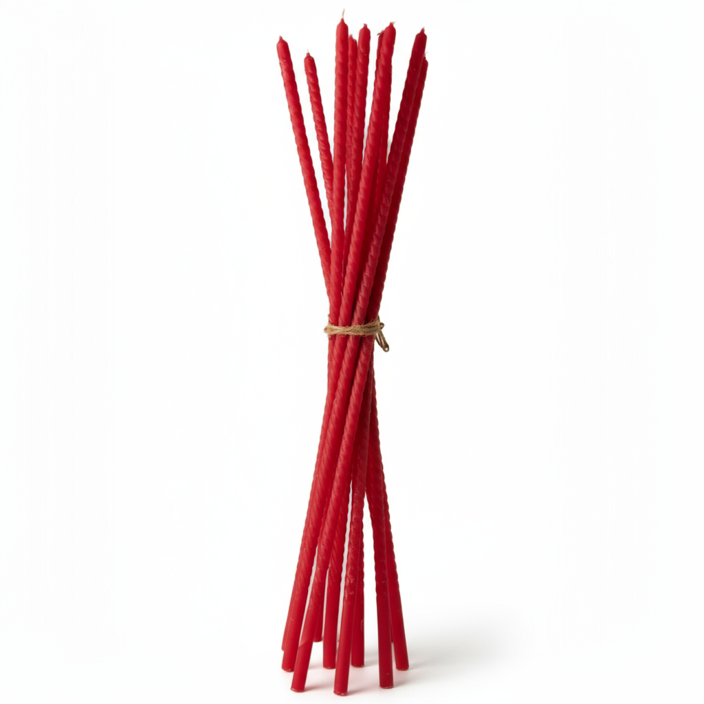 Bischofskerzen 80 cm Großhandel | Prozessionskerzen aus 100% Bienenwachs – handgemachte Altarkerzen in Gelb, Grün, Rot (10er-Set)